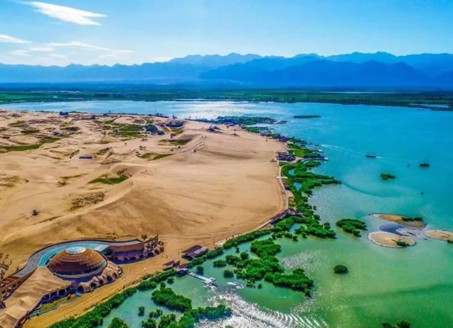 早餐后游覽國家 5A 級景區【沙湖旅游區】(含門票+大船,參觀約 2.5 小時),在這里,大漠金沙的豪放粗獷與碧湖葦蕩的恬靜秀美天然的融合在一起,構成一派大漠水鄉的沙湖 奇觀,湖水、沙山、蘆葦、飛鳥、游魚、荷塘在毛烏素大漠之上,營造出中國絕無僅有的勝地。