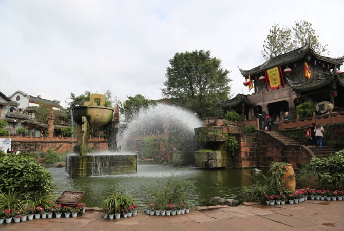 年水碼頭,古鎮黃龍溪,一座你來了還想來的古鎮。上古牌坊、古寺廟、古代民居與古榕樹、古崖墓、古渡口渾然一體,極具川西情調,風光獨具魅力。每年正月初一至大年十五,黃龍古鎮會舉行多種娛樂活動,如?;瘕垺⒉数?、水龍等,場面十分熱鬧。黃龍古鎮至今仍保留著打更的習俗,每天每兩小時打一次更,游人在此可真正感覺到黃龍鎮的古樸民風。
